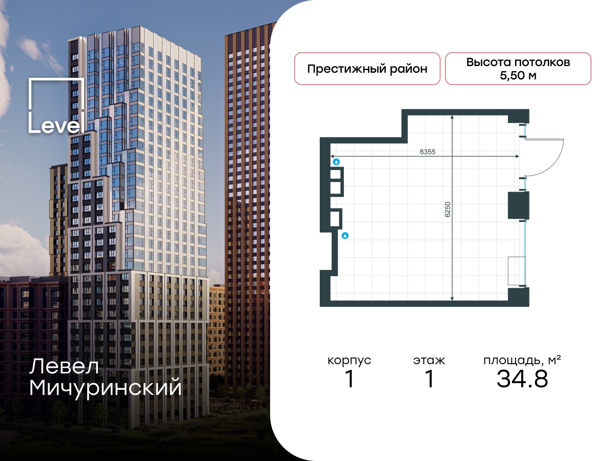 Купить ПСН 34 м² в ЖК Левел Мичуринский