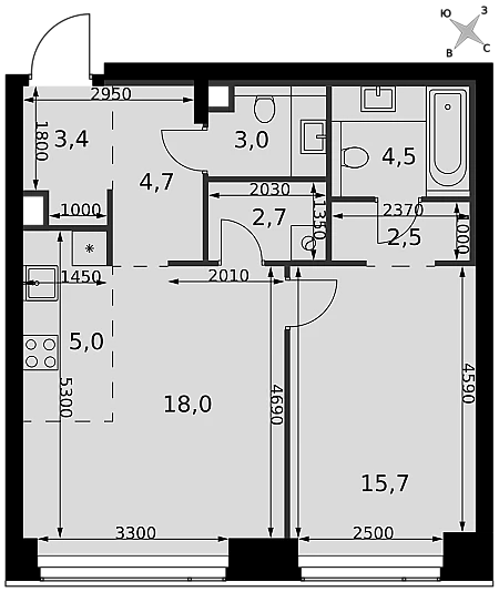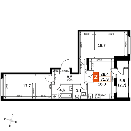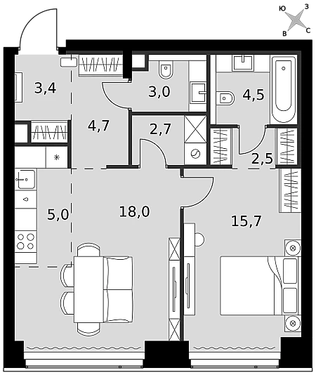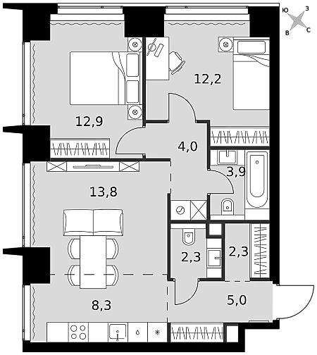 Купить 2к квартиру 58 м² в ЖК Sezar City