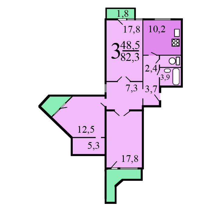 Квартира в отличном состоянии, никогда не сдавалась. Три изолированные комнаты, в первой комнате- балкон, в остальных- лоджии, выходящие на две стороны дома. Комфортный 13 этаж с приятным видом из окон. Имеется большая кладовая комната.