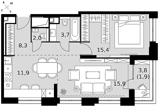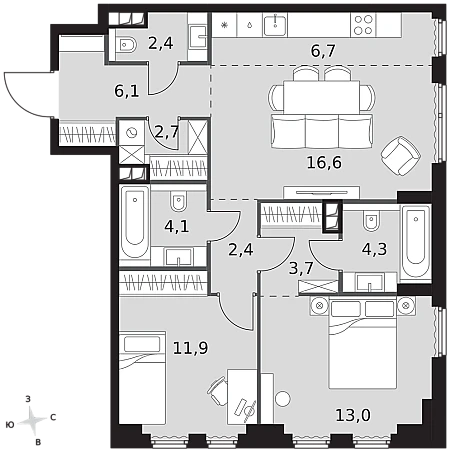 Купить 1к квартиру 53 м² в ЖК hideOUT