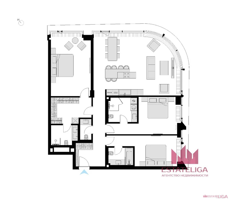 - мастер-спальня с собственной ванной и гардеробной