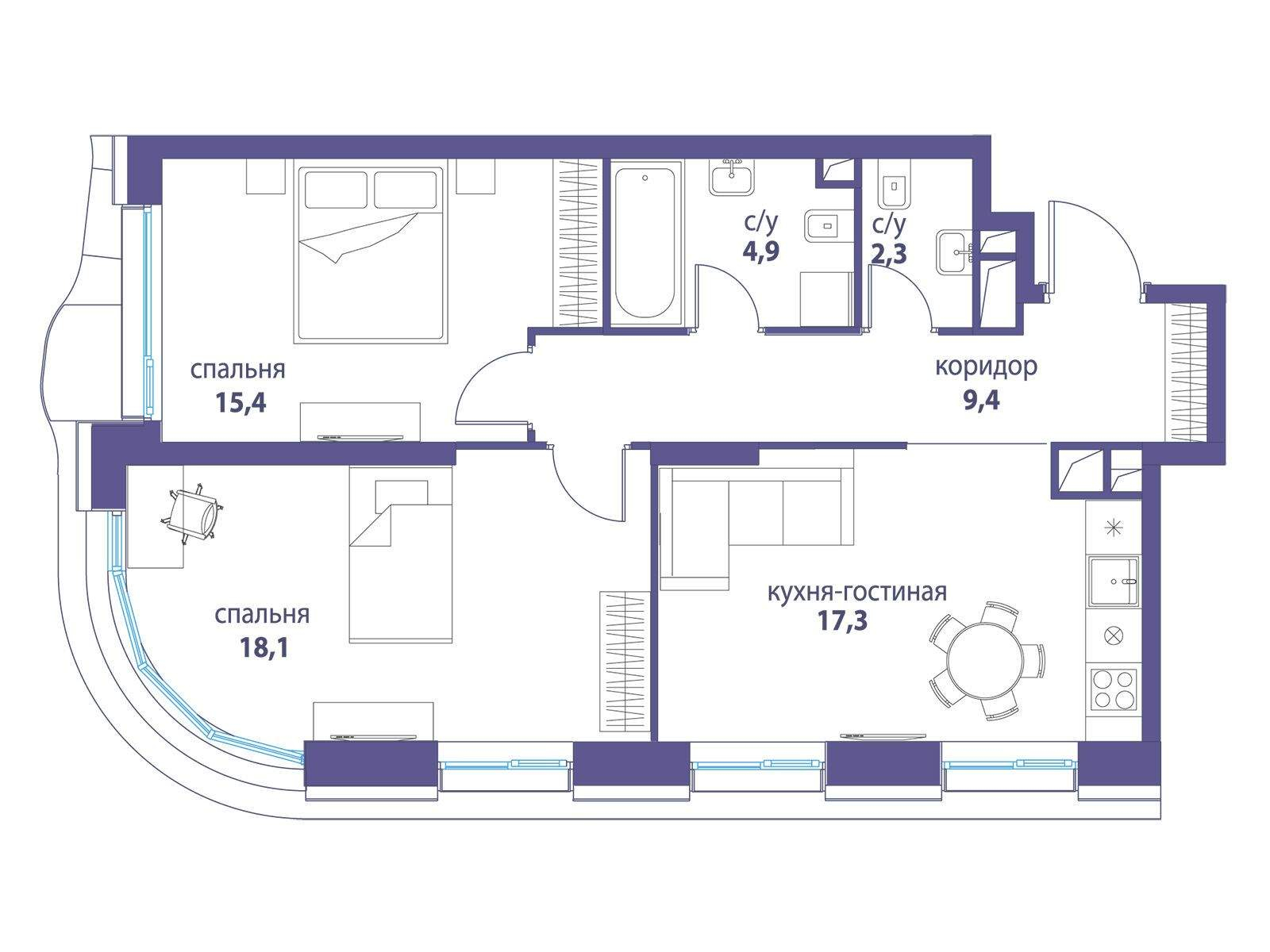 Продается 2-комнатная квартира от застройщика: общая площадь 66.20 м, жилая 33.50 м, кухня 17.30 м, 24-й этаж, жилой квартал «Вдохновение», корпус 34 (секция 1) . Срок сдачи: 4 квартал 2027 года.