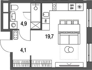 Купить 1к квартиру 41 м² в ЖК на Варшавском 100