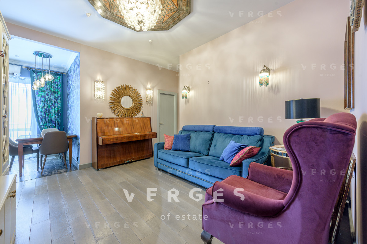 В жилом комплексе Кутузовская Ривьера предлагается в аренду квартира с ремонтом. Функциональная планировка: кухня-столовая-гостиная. Кухня оборудована все необходимой бытовой техникой, 2 спальни, хозяйская спальня с гардеробной комнатой, 2 санузла. Великолепные виды на природный заказник Долина реки Сетунь . ЖК Кутузовская Ривьера , уникальный комплекс расположенный в зеленом массиве, огороженная территория, просторный двор 3Га, ландшафтный дизайн, искусственная речка, развитая инфраструктура. ЖК Кутузовская Ривьера жилой комплекс класса премиум, расположен по адресу: г. Москва, ЗАО, ул. Нежинская, д. 1, корп. 1,2,3,4, - между природным заказником Долина реки Сетунь и Волынским лесопарком, недалеко от Кутузовского проспекта. Территория жк свободна от автомобилей, обустроена ландшафтным парком с беседками, скамейками, детскими и спортивной площадкой. Особенную гордость представляет рукотворная речка с несколькими группами фонтанов. Большая площадь панорамного остекления, рациональные планировки, высота потолков 3,1 м, бесшумные скоростные лифты Shindler, лобби корпусов с высокими потолками и межквартирные холлы отделаны деревом, металлом и мрамором Имперадор. Инфраструктура: ресторан изысканной кухни с румсервисом, мультисервис химчистка, детский сад, фитнес студия, салон красоты, автомойка с шиномонтажем. Единый четырехуровневый подземный паркинг (доступ лифта на всех уровнях), огороженная охраняемая территория.