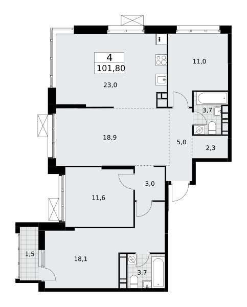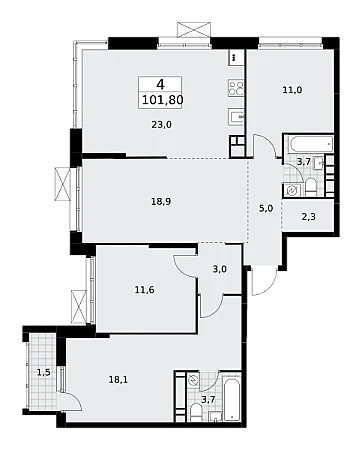 Продаётся 4-комнатная квартира, площадью 101,8 кв. м на 17-м этаже дома бизнес-класса в ЖК "Скандинавия". Квартира с функциональной планировкой: большие окна, высота потолка 3,1 м, балкон, гардероб, мастер-спальня.
