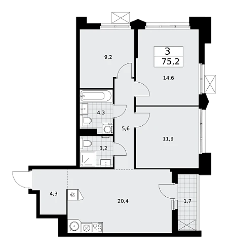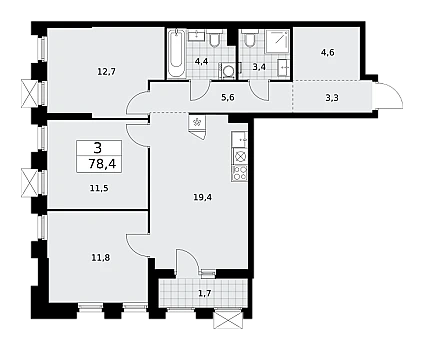 Квартира, 5-комн., 108,9 м², ЮЗАО, (м.Улица Горчакова) | ЮЗАО, муниципальный округ Южное Бутово, Чечёрский проезд, д. 28, корп. 1, этаж 13, кв. 79 | Метро: Улица Горчакова (пешком 12 мин., транспортом 12 мин., расстояние 0.81 км)