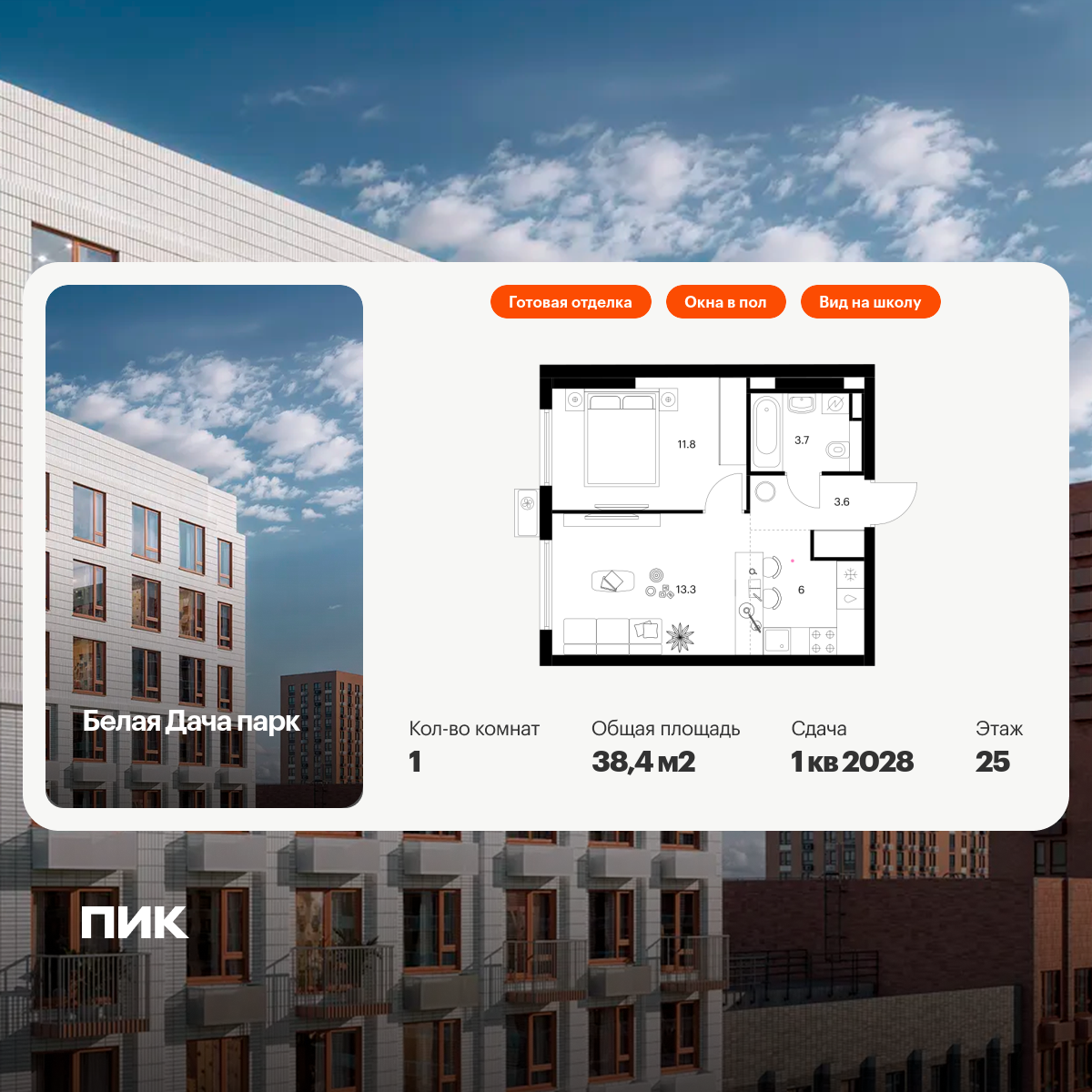 Квартиры сдаются с отделкой на выбор: готовая — для тех, кто хочет переехать сразу, и предчистовая — чтобы сделать финальную часть ремонта самостоятельно и реализовать собственный дизайн. Артикул - 969105