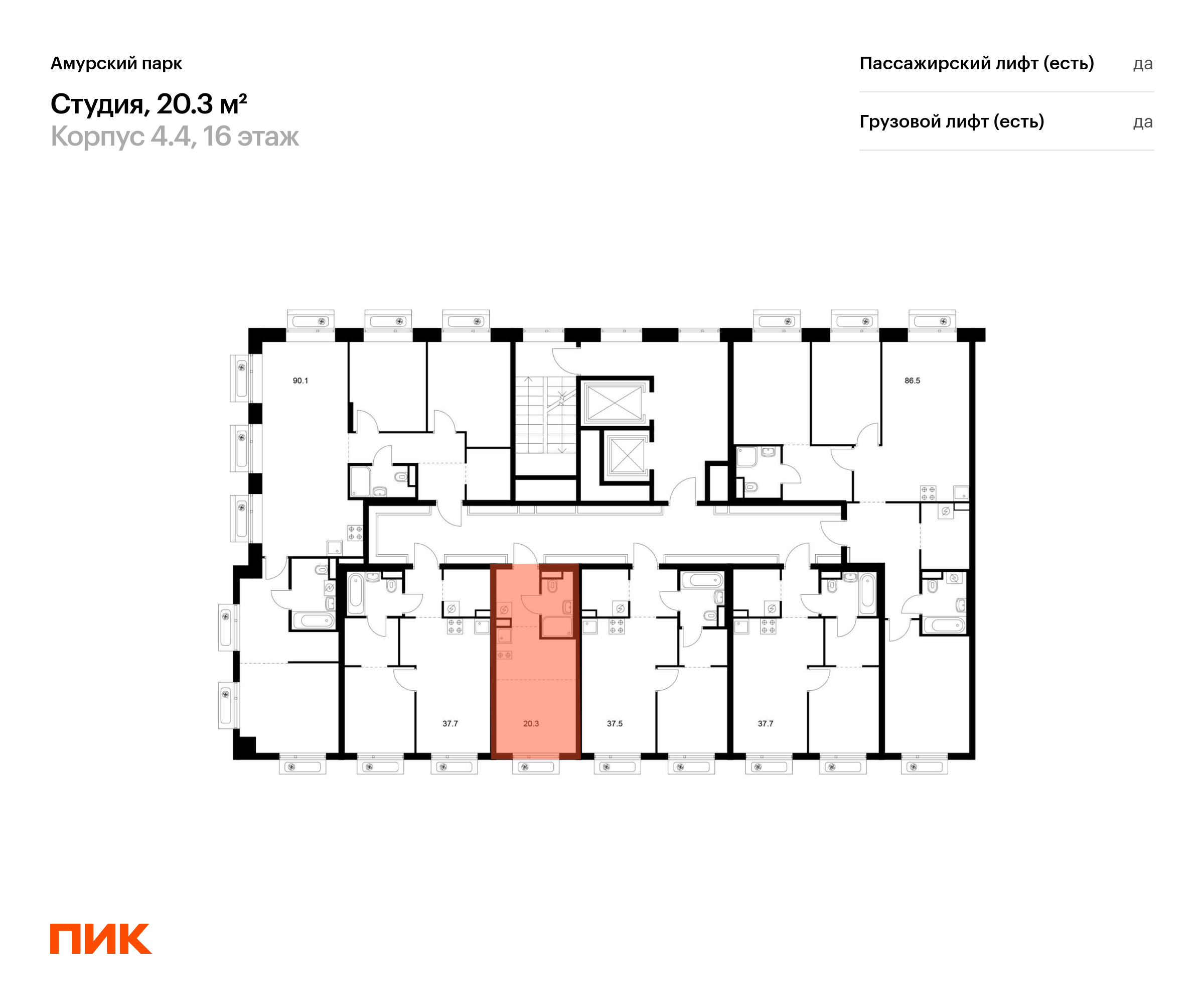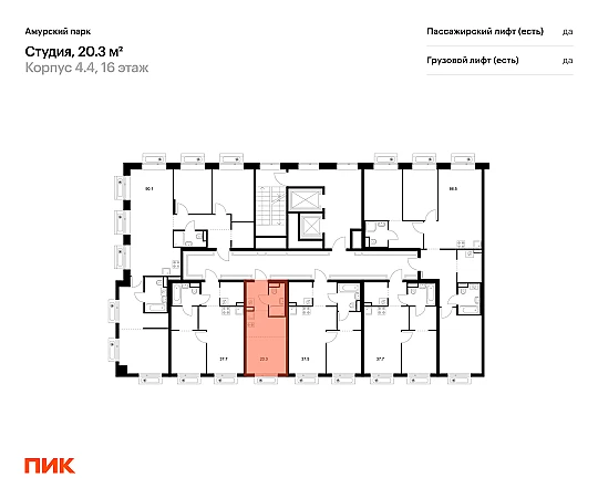 Продаётся квартира-студия площадью 20.30 кв.м на 16 этаже 19 этажного дома (Корпус 4.4, секция 4) проекта ПИК Амурский парк. Светлый просторный подъезд на уровне земли, функциональная планировка, большие окна, с отделкой.