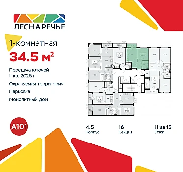 Продаётся 1-комн.квартира площадью 37.40 кв.м на 15 этаже 16 этажного дома (Корпус 57.1, секция 1) проекта ПИК Саларьево парк. Светлый просторный подъезд на уровне земли, функциональная планировка, большие окна, с отделкой.