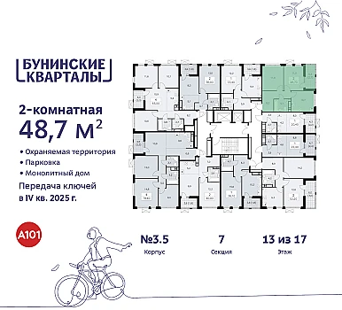 Для любителей спорта в 10 минутах пешком от квартала — велодром с BMX-трассой, физкультурно-оздоровительный комплекс Горизонт, а также лыжероллерная трасса длиной около 3 км. Артикул - 1030940