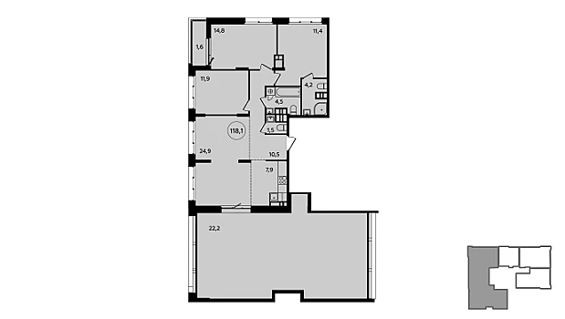 Эта квартира предлагается без отделки. Будут установлены стеклопакеты с повышенной тепло- и шумоизоляцией, в квартиру заведены все коммуникации. Вы сможете в полном объеме реализовать ваши идеи обустройства вашего комфортного дома. Имеется ниша под гардероб.