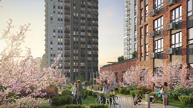Для каждой группы домов фасады разработаны отдельно. Сочетание различных цветов и материалов привносит разнообразие и динамику в облик нового района. В отделке вентилируемых фасадов будут применяться качественные и долговечные материалы: штукатурка, облицовочная фасадная плитка разных размеров и текстур.