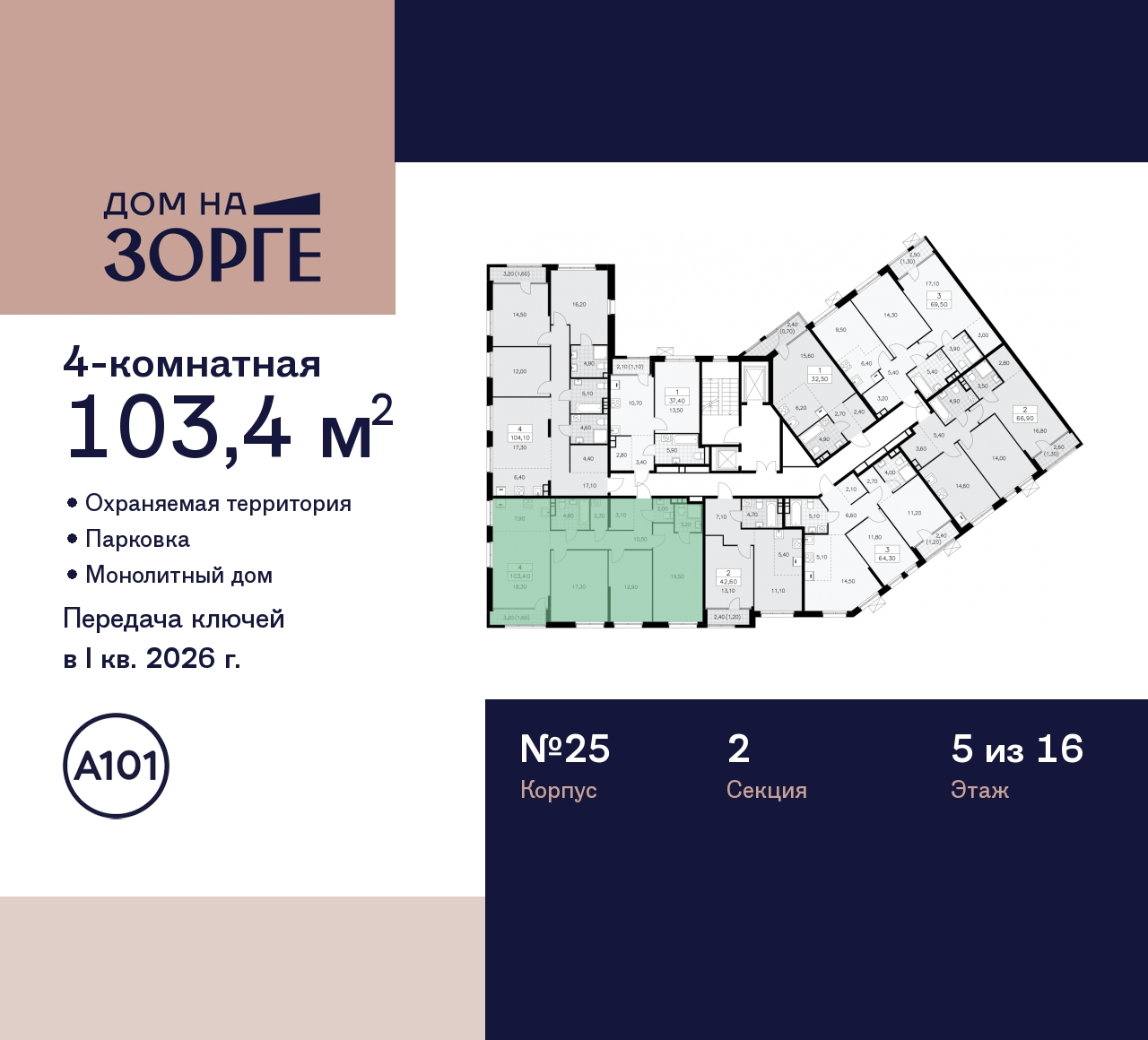 Купить 4к квартиру 103 м² в ЖК "Дом на Зорге"