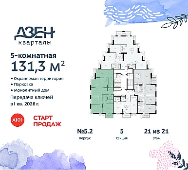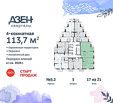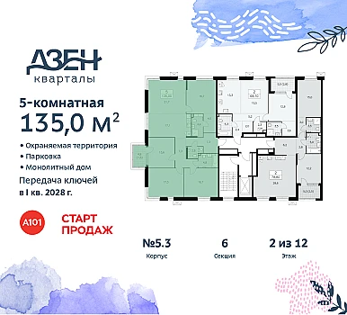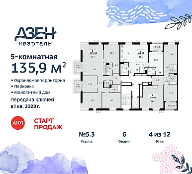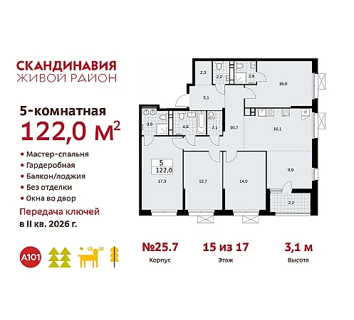 Купить 5к квартиру 122 м² в ЖК "Скандинавия"