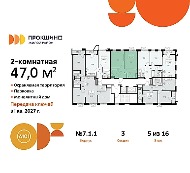 Квартира находится в корпусе 1.1. Дом монолитный, одноподъездный, высотой 10 этажей. На этаже 11 квартир. В подъезде 1 пассажирский и 1 грузовой лифт. Начало строительства - 4 квартал 2023 года. Окончание строительства - 4 квартал 2026 года. Оформление сделки по договору долевого участия.