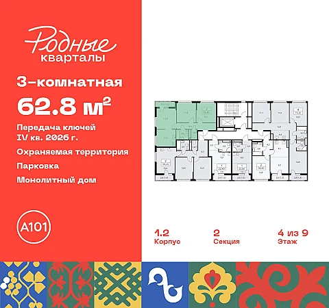 Купить 3к квартиру 62 м² в ЖК "Родные кварталы"