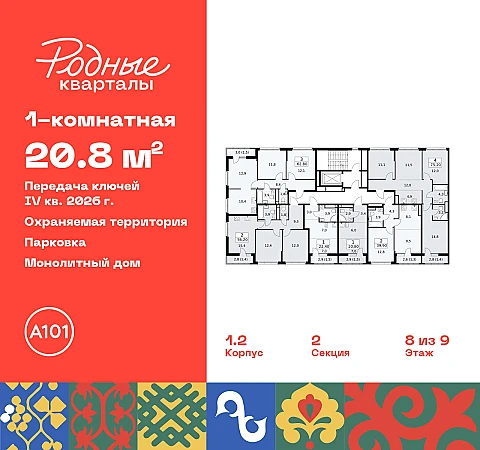 Купить 1к квартиру 20 м² в ЖК "Родные кварталы"