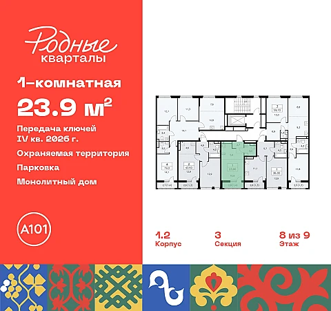 Купить 1к квартиру 23 м² в ЖК "Родные кварталы"
