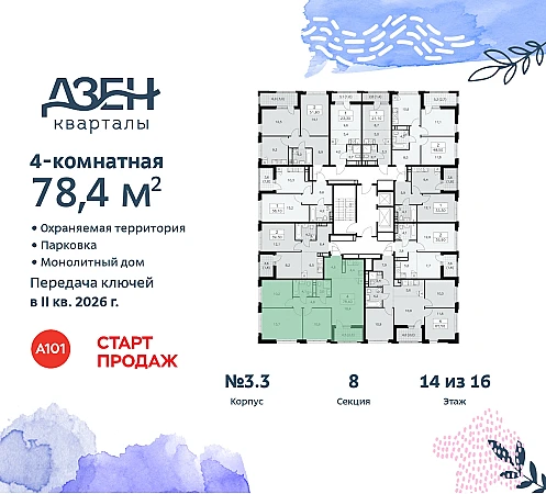 Купить 4к квартиру 78 м² в ЖК "Дзен-кварталы"