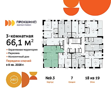 Квартира находится в корпусе 3.3. Дом монолитный, одноподъездный, высотой 16 этажей. На этаже 10 квартир. В подъезде 1 пассажирский и 1 грузовой лифт. Окончание строительства - 2 квартал 2026 года. Оформление сделки по договору долевого участия.