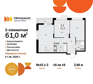Купить 3к квартиру 61 м² в ЖК "Прокшино"