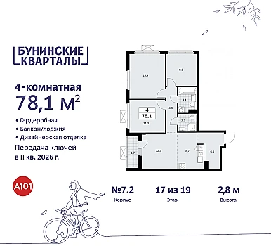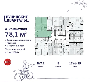 Дом монолитный, трехподъездный, переменной этажности, от 12 до 17 этажей. Квартира находится в 1-й секции высотой 17 этажей в корпусе 7.1.2. На этаже 5 квартир. В подъезде 1 пассажирский и 1 грузовой лифт. Начало строительства - 4 квартал 2024 года. Окончание строительства - 2 квартал 2027 года. Оформление сделки по договору долевого участия.