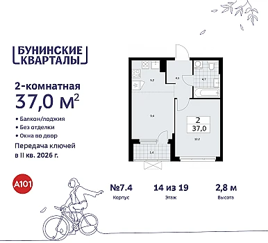 Дом монолитный, трехподъездный, переменной этажности, от 12 до 17 этажей. Квартира находится в 3-й секции высотой 12 этажей в корпусе 7.1.2. На этаже 5 квартир. В подъезде 1 пассажирский и 1 грузовой лифт. Начало строительства - 4 квартал 2024 года. Окончание строительства - 2 квартал 2027 года. Оформление сделки по договору долевого участия.
