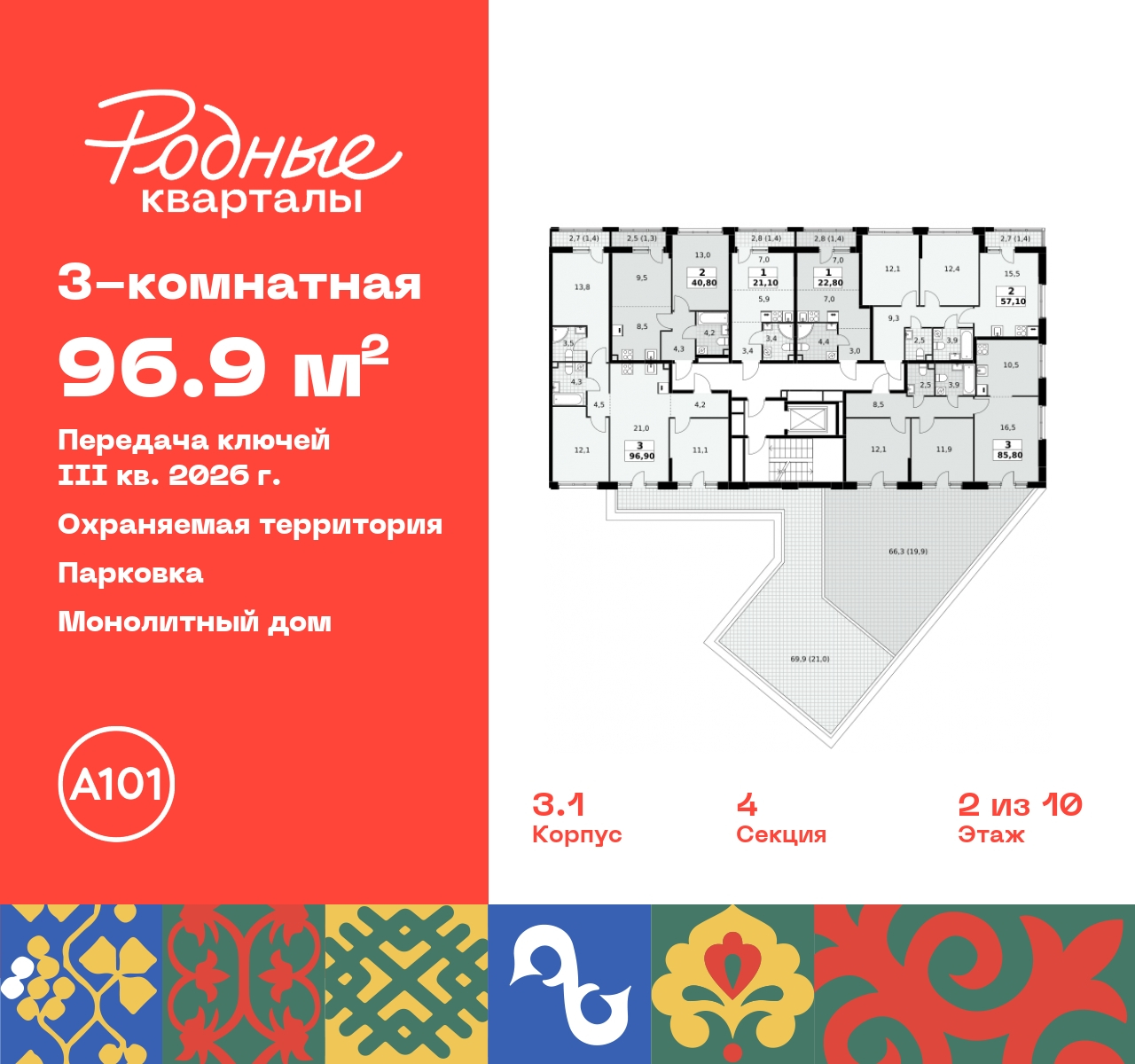 Купить 3к квартиру 96 м² в ЖК "Родные кварталы"