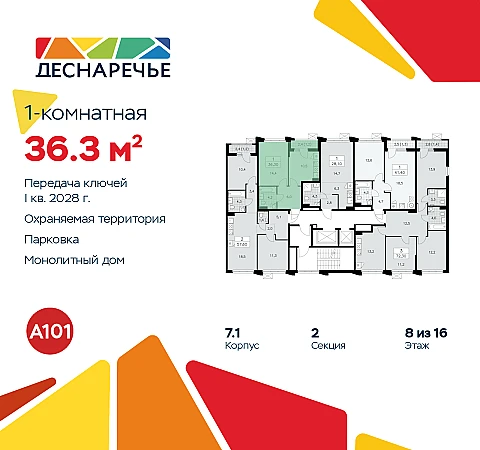 Купить 1к квартиру 36 м² в ЖК "Деснаречье"
