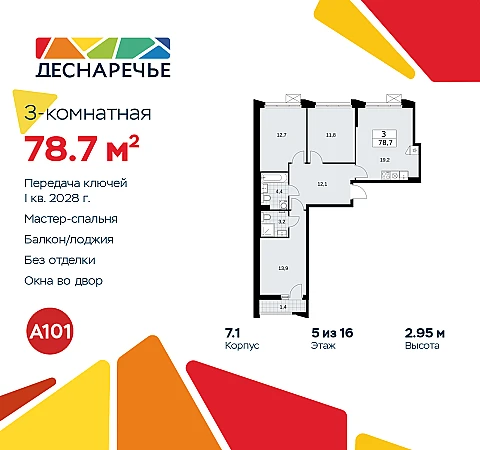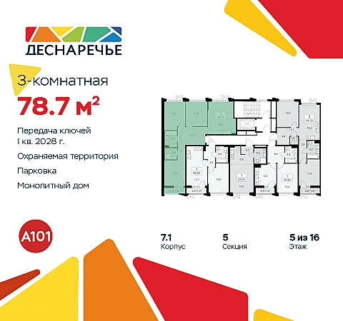 Дом монолитный, многоподъездный, переменной этажности, от 8 до 16 этажей. Квартира находится в 5-й секции высотой 8 этажей в корпусе 7.1. На этаже 5 квартир. В подъезде 1 грузовой лифт. Начало строительства - 2 квартал 2025 года. Окончание строительства - 1 квартал 2028 года. Оформление сделки по договору долевого участия.