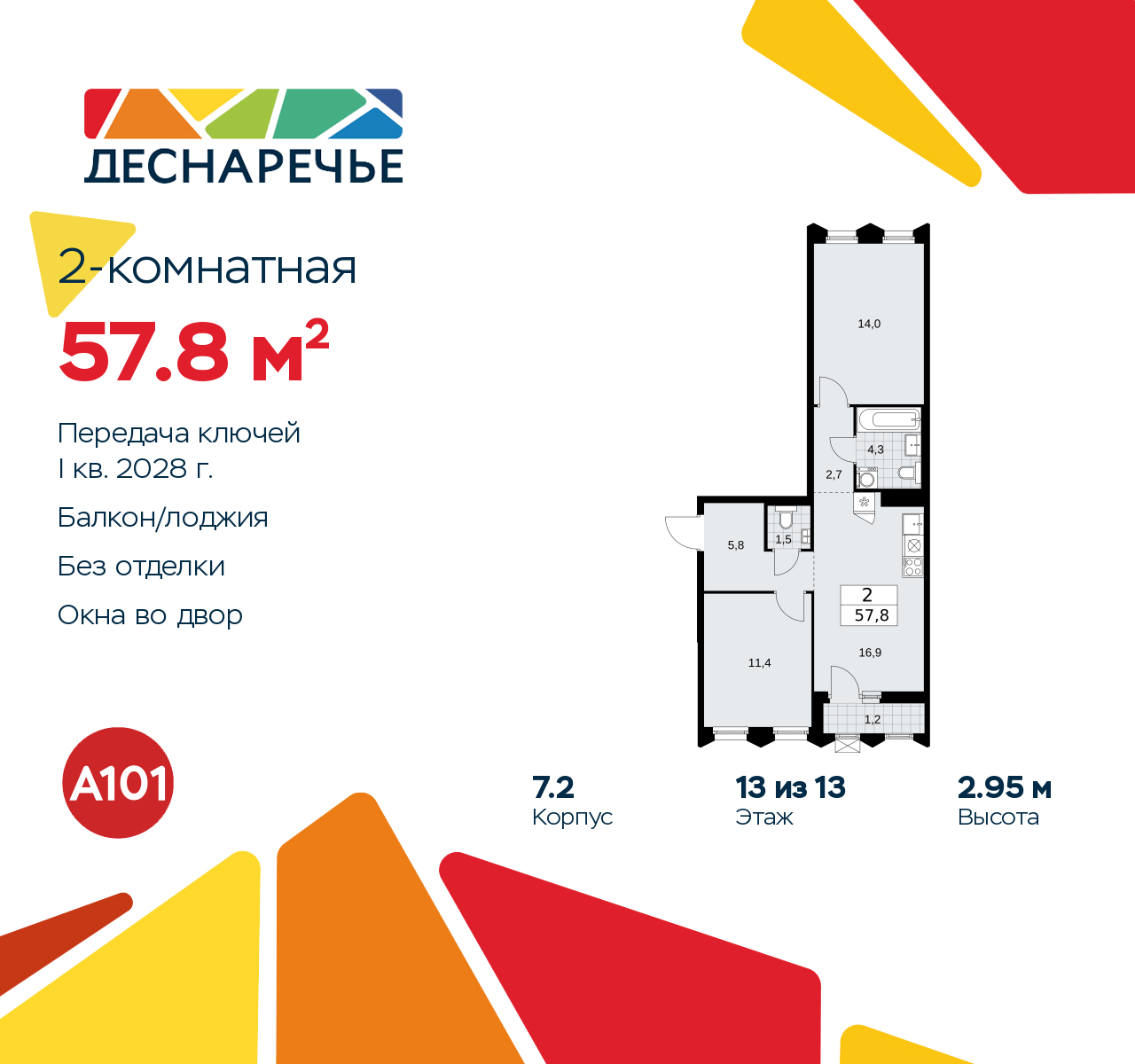 Купить 2к квартиру 57 м² в ЖК "Деснаречье"