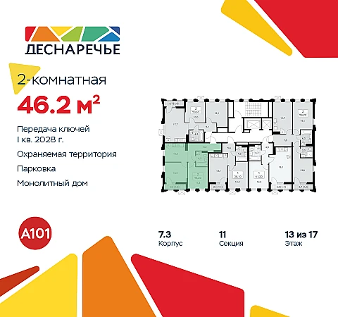 Купить 2к квартиру 46 м² в ЖК "Деснаречье"