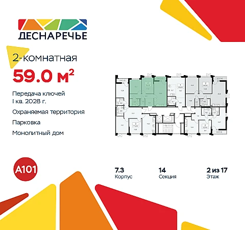 Купить 2к квартиру 59 м² в ЖК "Деснаречье"