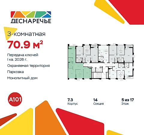 Купить 3к квартиру 70 м² в ЖК "Деснаречье"