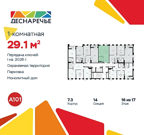 Купить 1к квартиру 29 м² в ЖК "Деснаречье"