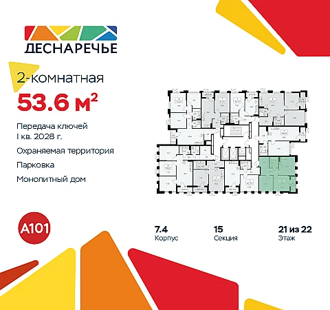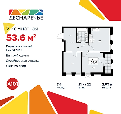 Купить 2к квартиру 53 м² в ЖК "Деснаречье"