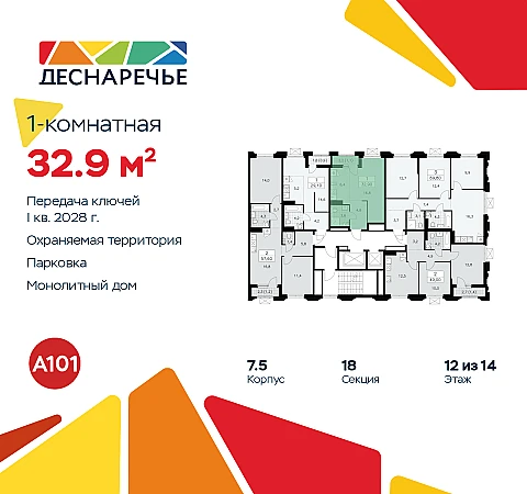 Купить 1к квартиру 32 м² в ЖК "Деснаречье"
