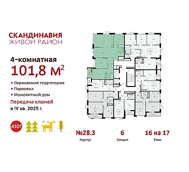 Купить 3к квартиру 97 м² в ЖК "Дзен-кварталы"