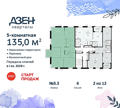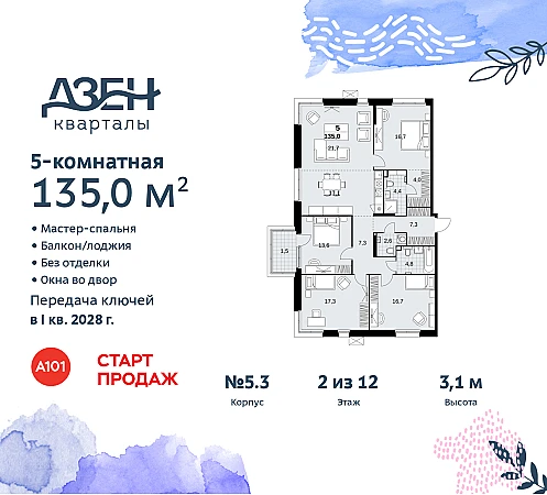 Купить 5к квартиру 135 м² в ЖК "Дзен-кварталы"