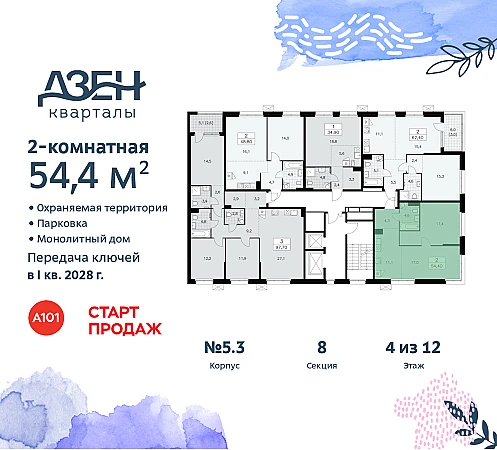 Купить 2к квартиру 54 м² в ЖК "Дзен-кварталы"