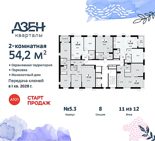 Купить 2к квартиру 54 м² в ЖК "Дзен-кварталы"