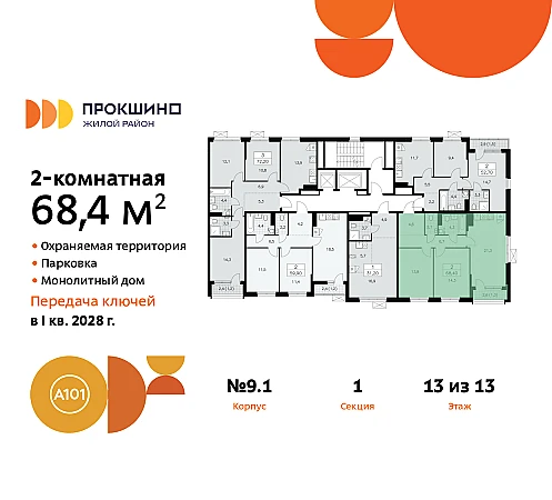 Купить 2к квартиру 68 м² в ЖК "Прокшино"