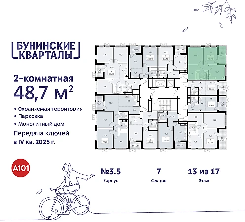 Купить 2к квартиру 48 м² в ЖК "Бунинские кварталы"
