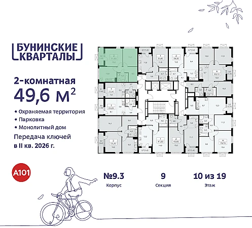 Квартира находится в корпусе 9.3. Дом монолитный, одноподъездный, высотой 19 этажей. На этаже 10 квартир. В подъезде 1 пассажирский и 1 грузовой лифт. Начало строительства - 4 квартал 2023 года. Окончание строительства - 2 квартал 2026 года. Оформление сделки по договору долевого участия.