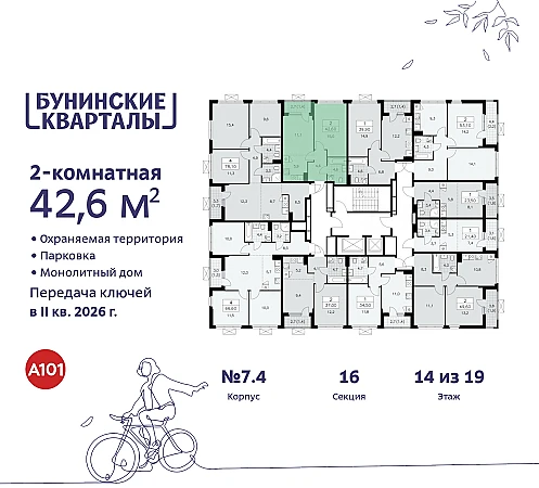 Купить 2к квартиру 42 м² в ЖК "Бунинские кварталы"
