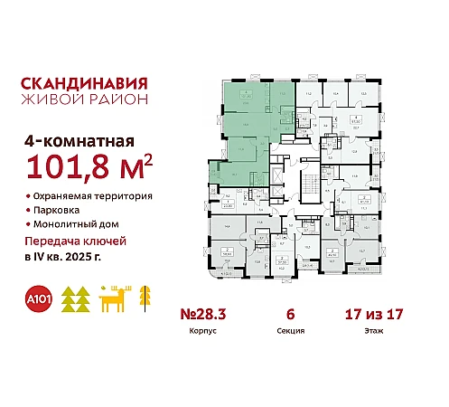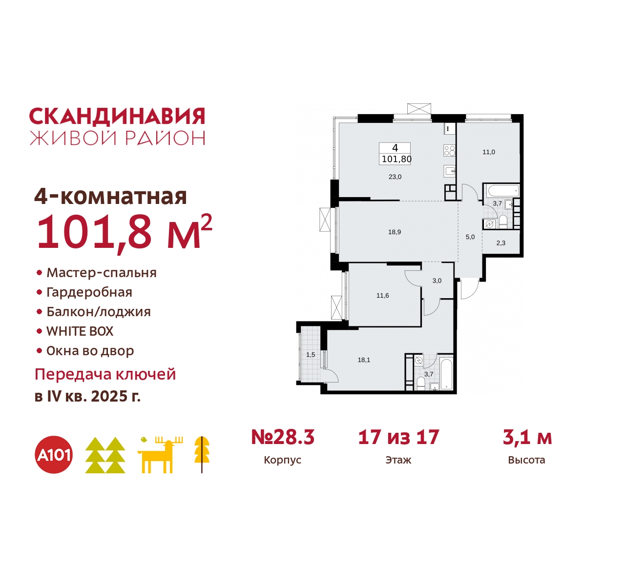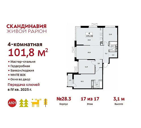 Купить 4к квартиру 101 м² в ЖК "Скандинавия"