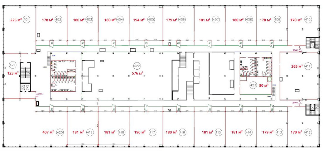 Этот лот состоит из нескольких помещений: 273 кв. м., 452 кв. м. и 610 кв. м.