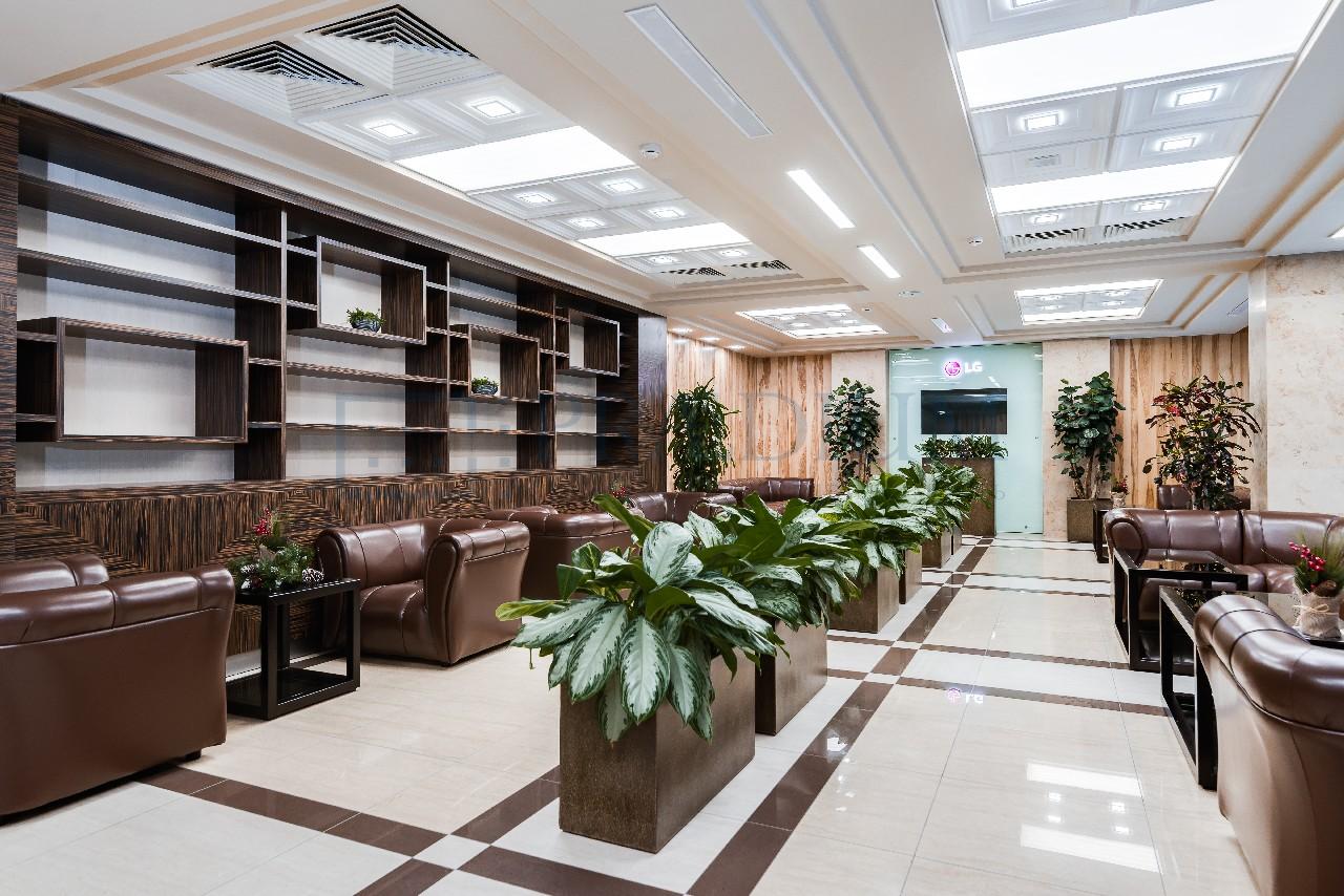 С мебелью. Приточно-вытяжная вентиляция. Центральное кондиционирование. Пожарная сигнализация. Интернет, телефония. Охрана. Видеонаблюдение. Система контроля доступа. Лифты: «LG-Sigma». Наземная парковка.