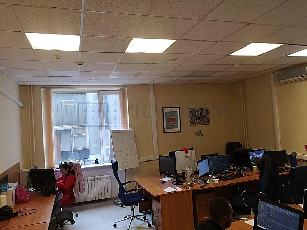 Планировка - кабинетная. Центральное кондиционирование. Пожарная сигнализация. Интернет, телефония. Охрана. Наземная парковка.
