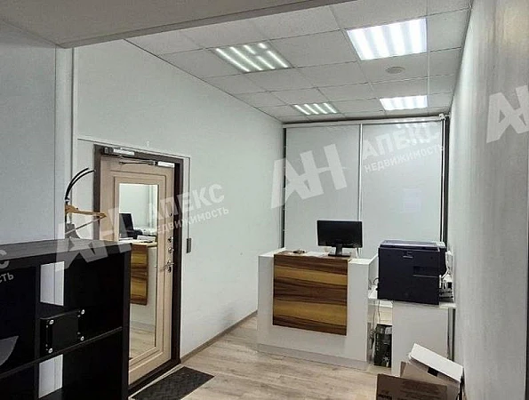Лот №1015863 Сдается офисное помещение на пятом этаже. Планировка смешанная и включает в себя отдельные кабинеты, пространство open space и зону ресепшен. По периметру расположены большие окна, обеспечивающие хорошее естественное освещение. Полы выполнены из ламината, высота потолков составляет четыре метра.